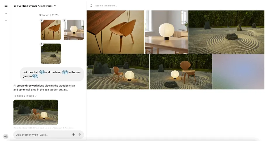 - Generate the image, then switch to edit mode to refine via language prompts or the drag UI.