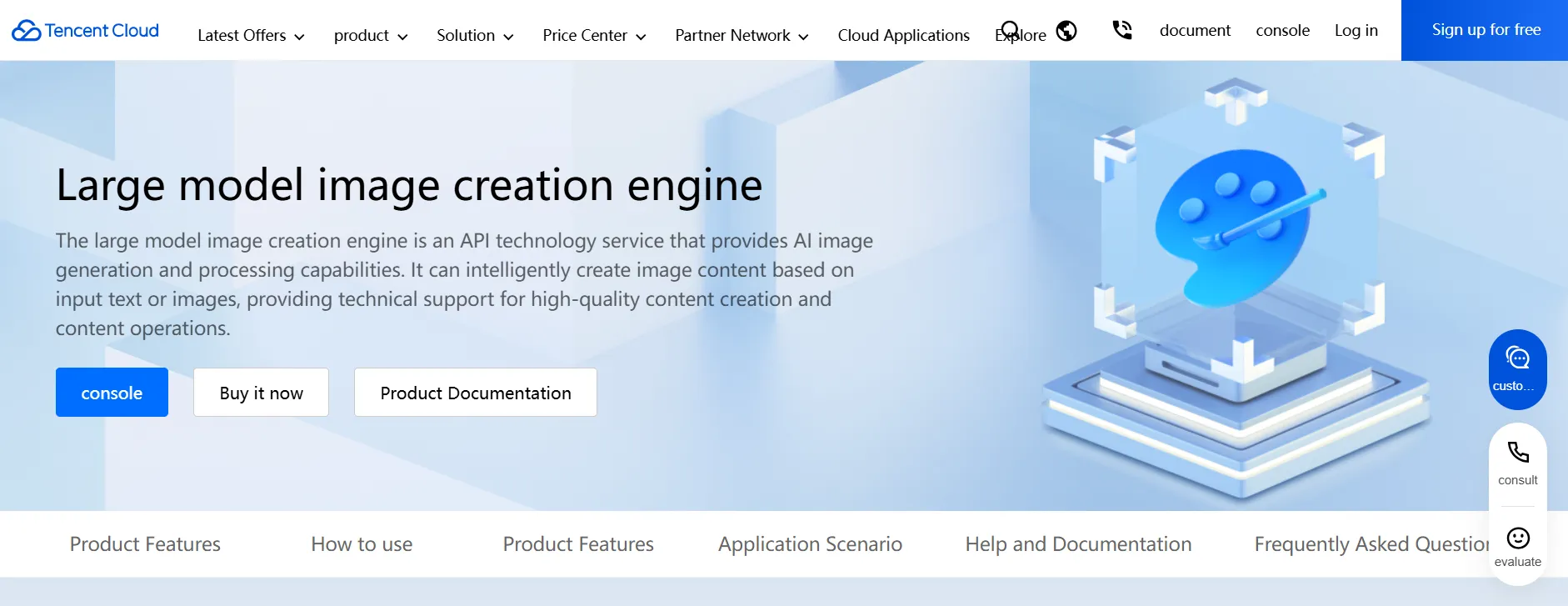 | Web / console | Tencent Cloud “Large Model Image Creation Engine” UI | 50 free images when you activate the service; thereafter you fall back to usage-based or resource packs. |