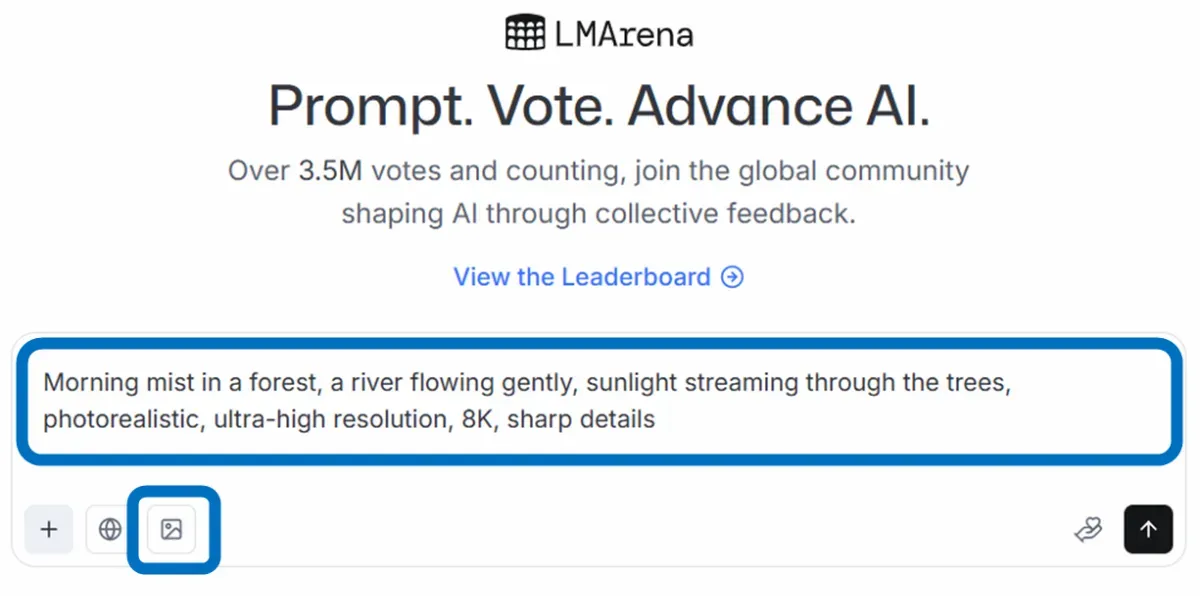 In the central input field, enter the content of the image you want to generate or edit. To edit an existing image, upload it using the ”+” button and enter a prompt similarly.