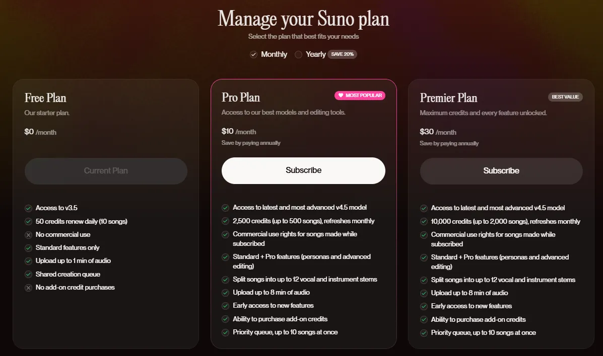 - First Try the Free Plan Confirm the speed and quality of song generation.