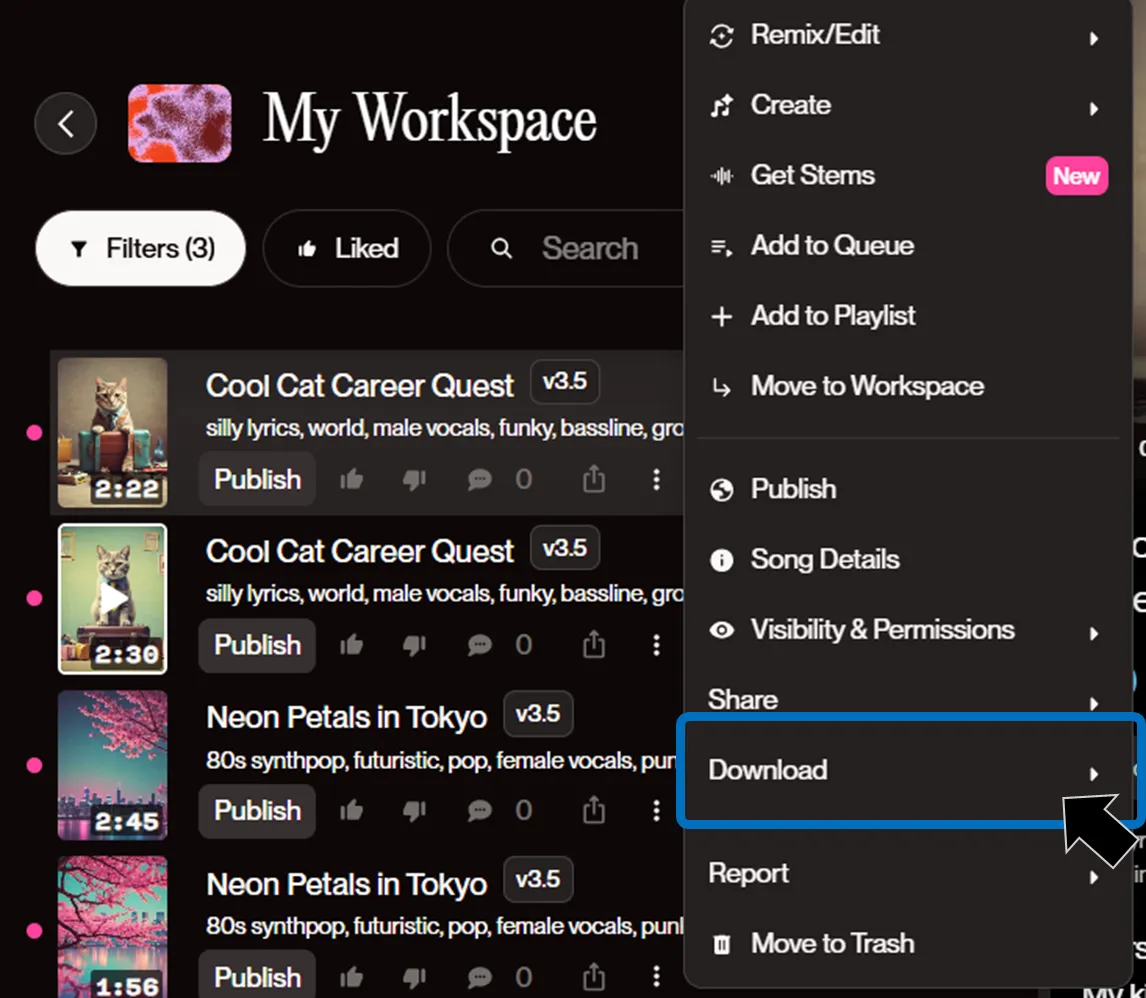 All were generated with just a few lines of prompts or humming audio, demonstrating SUNO’s ability to cover diverse genres.