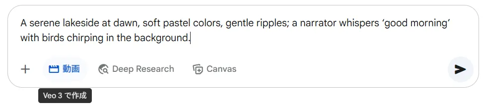 Generation Speed and Cost Efficiency (Veo 3 Fast) Supports “Veo 3 Fast” which can generate videos in shorter time and at lower cost than the standard model. Suitable for creating variations for social media and prototyping at the idea stage. It’s efficient to first establish direction with Fast, then finalize with Veo 3. Note that Fast has a specification difference of being incompatible with Image-to-Video (text-to-video only).