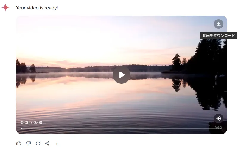 After generation, save directly in MP4 format. SynthID watermark is automatically applied, eliminating copyright concerns.